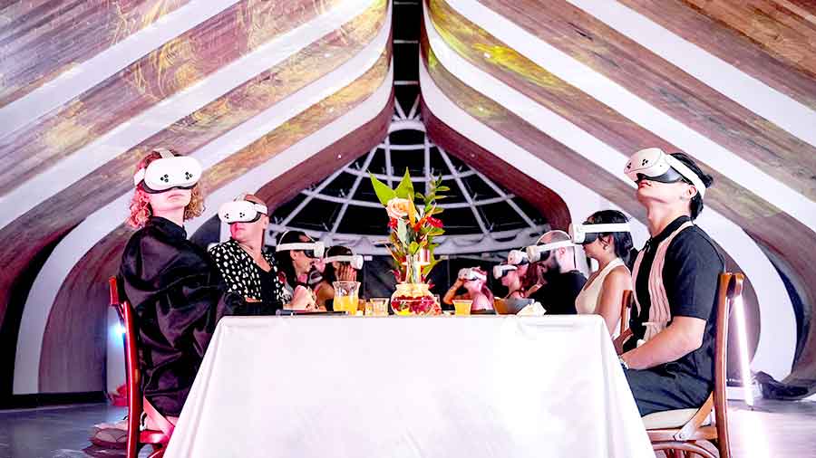 Para tamu diajak memasuki delapan dunia VR berbeda, di mana setiap visual dan atmosfer dirancang selaras dengan hidangan yang disajikan, membentuk sebuah narasi yang mengalir dari awal hingga akhir.