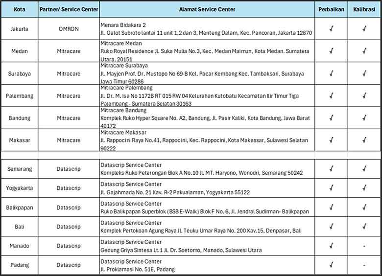 Dalam memperluas jangkauan ini, Omron bekerja sama dengan beberapa mitra strategis untuk mengelola pusat layanan di berbagai wilayah.